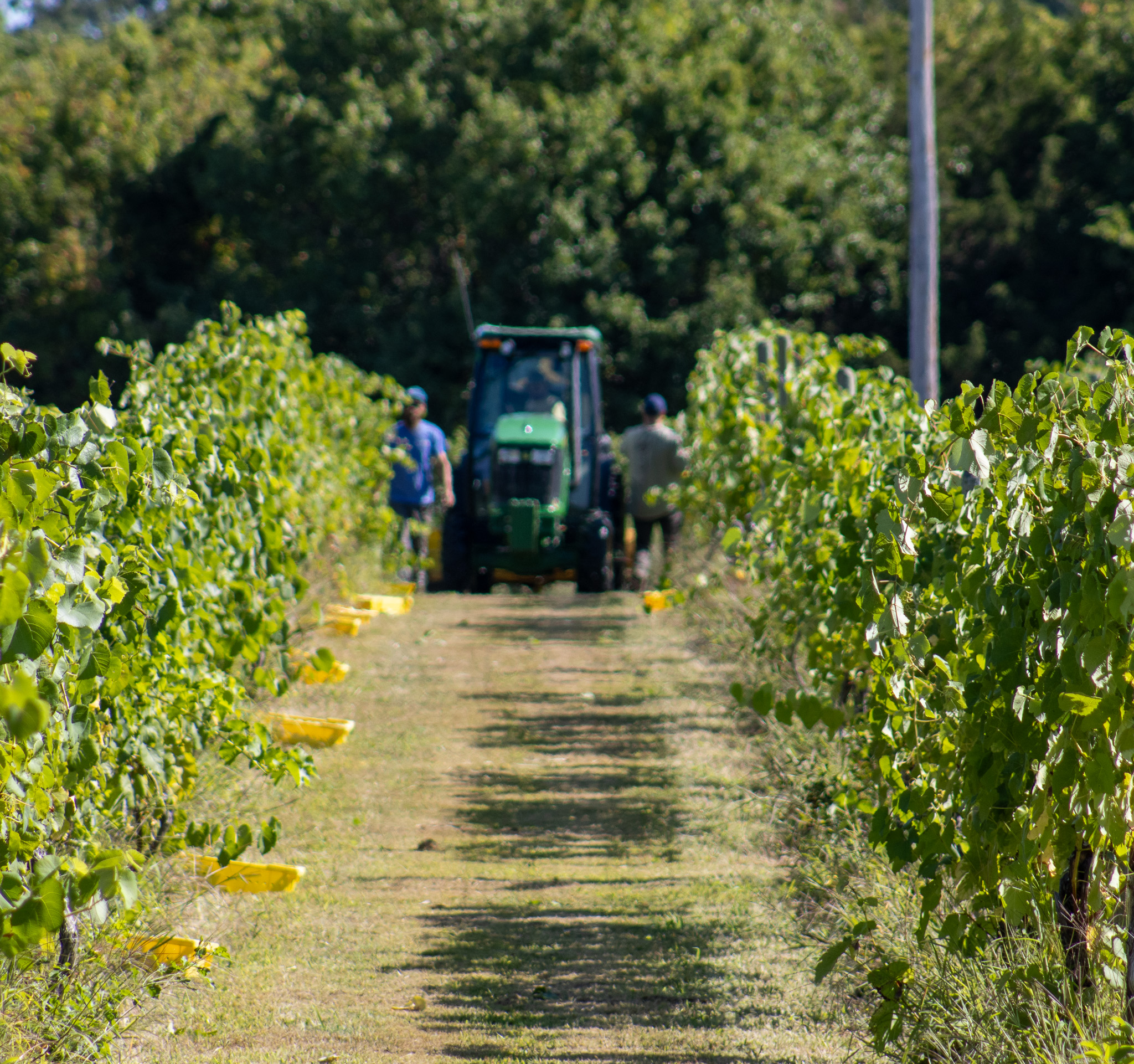 Our four unique vineyard sites span 26 acres under trellis, enveloped in 150 acres of property. Each year we harvest 12 varietals, including: Chardonnay, Pinot Noir, Cabernet Sauvignon, Cabernet Franc, Merlot, Riesling, Gamay, Sauvignon Blanc, Pinot Grigio, Cayuga, Vidal Blanc and Chanbourcin. In creating true expressions for each varietal our winemaking is directly tied to our grape growing philosophy. We harvest our fruit at their peak ripeness, making balanced wines and keeping in mind flavor and texture.